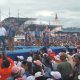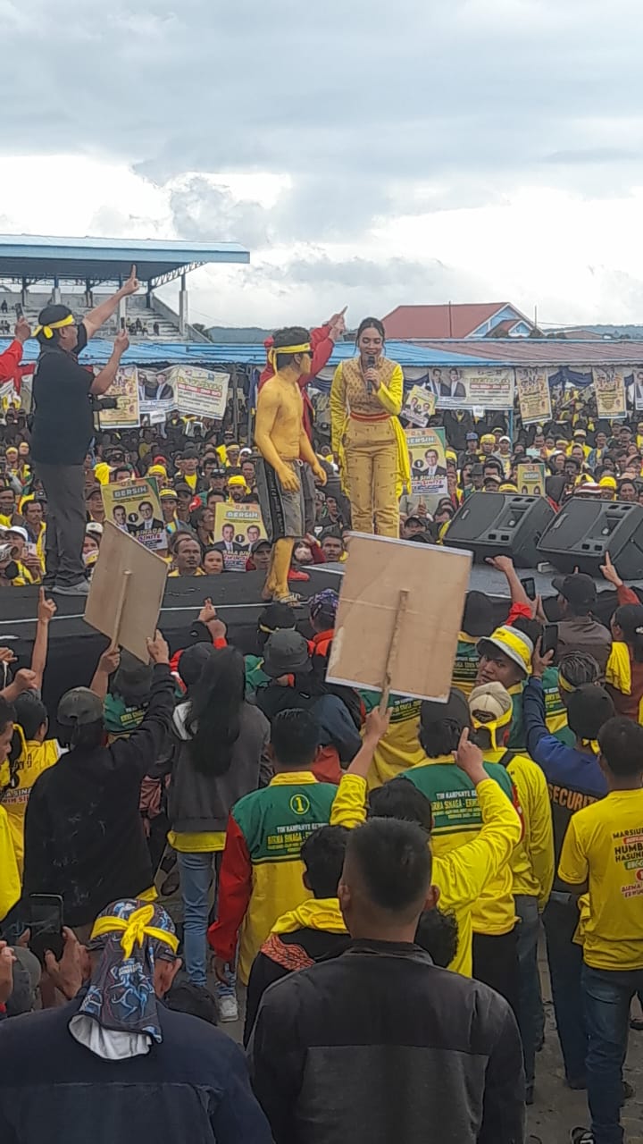 Meski sempat diguyur hujan, antusiasme para pendukung tetap tinggi, terlebih dengan hiburan dari artis ibu kota dan lokal.