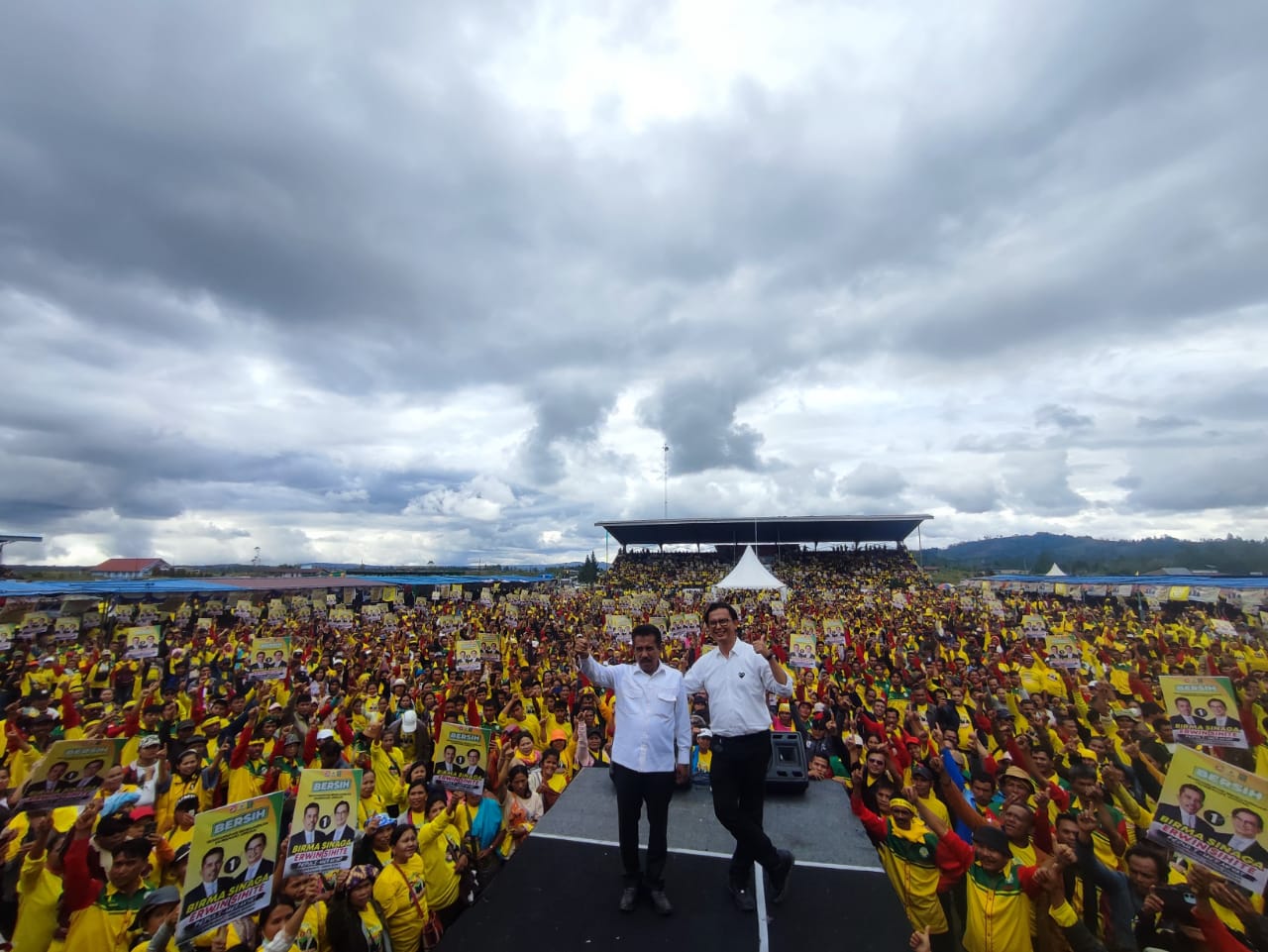 Doloksanggul (Sumut), LIVESUMUT.com – Diperkirakan lebih dari lima puluh ribu pendukung pasangan calon Bupati dan Wakil Bupati Humbang Hasundutan nomor urut 1, Birma Sinaga dan Erwin Princen Sihite, memadati Lapangan Simangaronsang, Doloksanggul, dalam kampanye akbar yang berlangsung meriah hari ini.