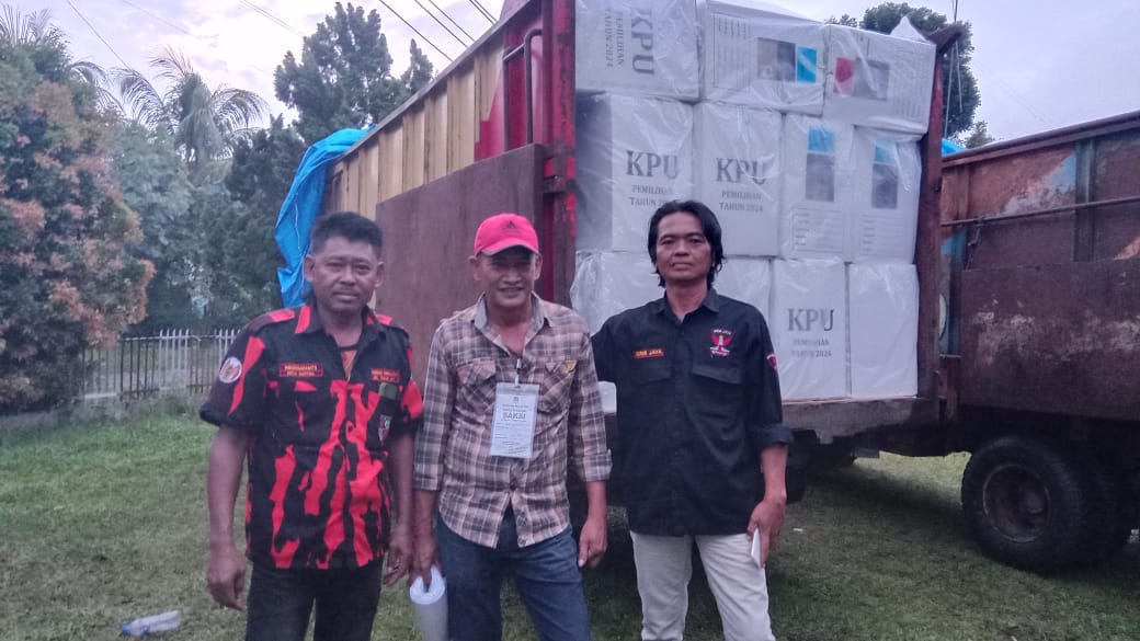 Ketua PAC GRIB Jaya Tanah Jawa Darwin Simanjuntak juga didampingi oleh Ketua OKK Ardiansyah dan anggota Pemuda Pancasila dalam mendukung pengawalan penghitungan suara.