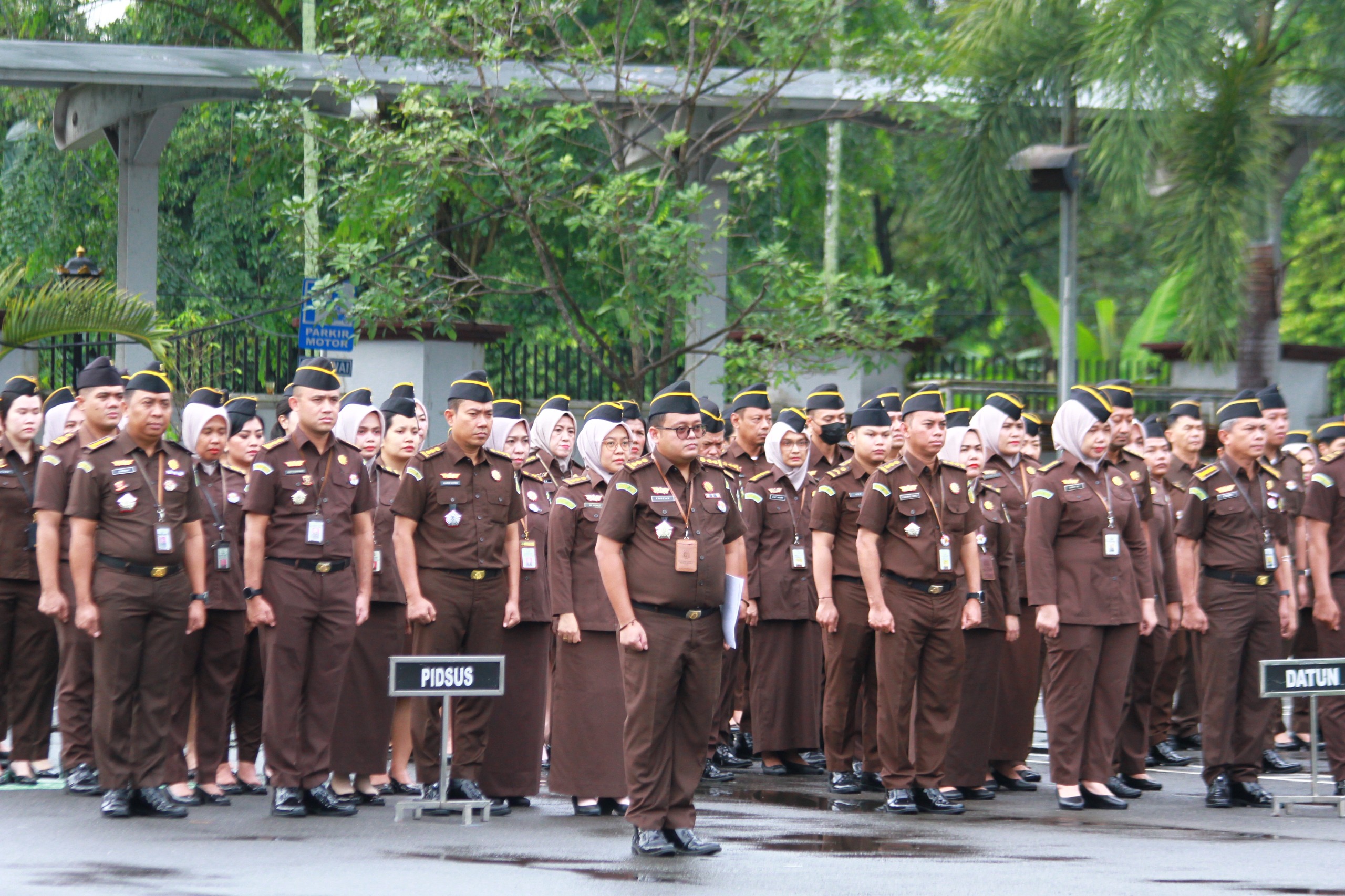 Apel ini dihadiri Wakajati Rudy Irmawan, SH, MH, para asisten, koordinator, kepala seksi, jaksa fungsional, pegawai, tenaga honorer, dan tenaga pendukung lainnya.