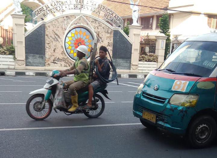 Foto pengendara tampak tidak menggunakan helm.