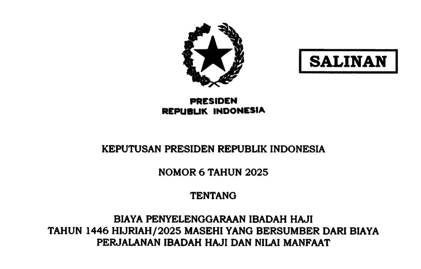 Keppres ini ditandatangani pada 12 Februari 2025 dan mengatur biaya yang bersumber dari Biaya Perjalanan Ibadah Haji (Bipih) dan Nilai Manfaat.
