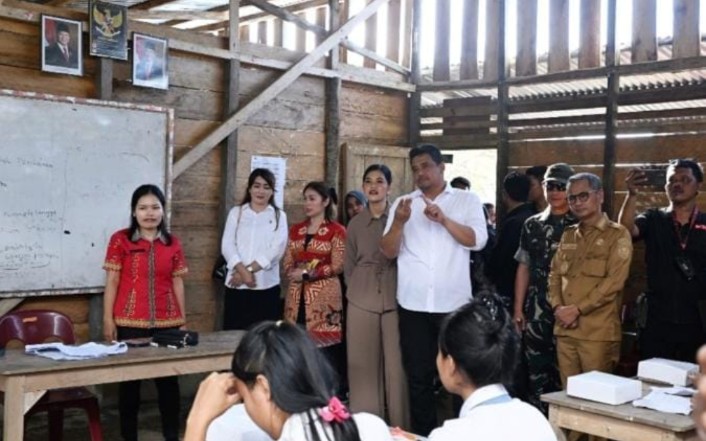 Salah satu agendanya adalah meninjau kondisi SMKN 1 Gido, Nias, yang saat ini masih berupa bangunan dari papan dengan atap seng.