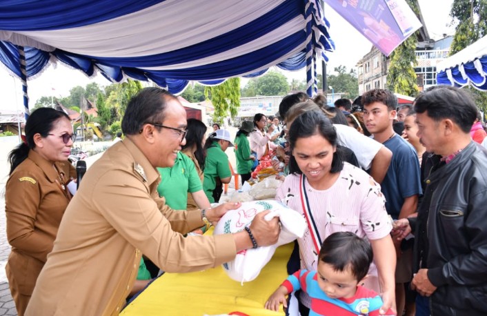 Sejak pagi, warga rela mengantre demi mendapatkan bahan pangan pokok seperti beras, minyak goreng, gula pasir, serta komoditas lainnya dengan harga lebih murah dibandingkan harga pasaran.