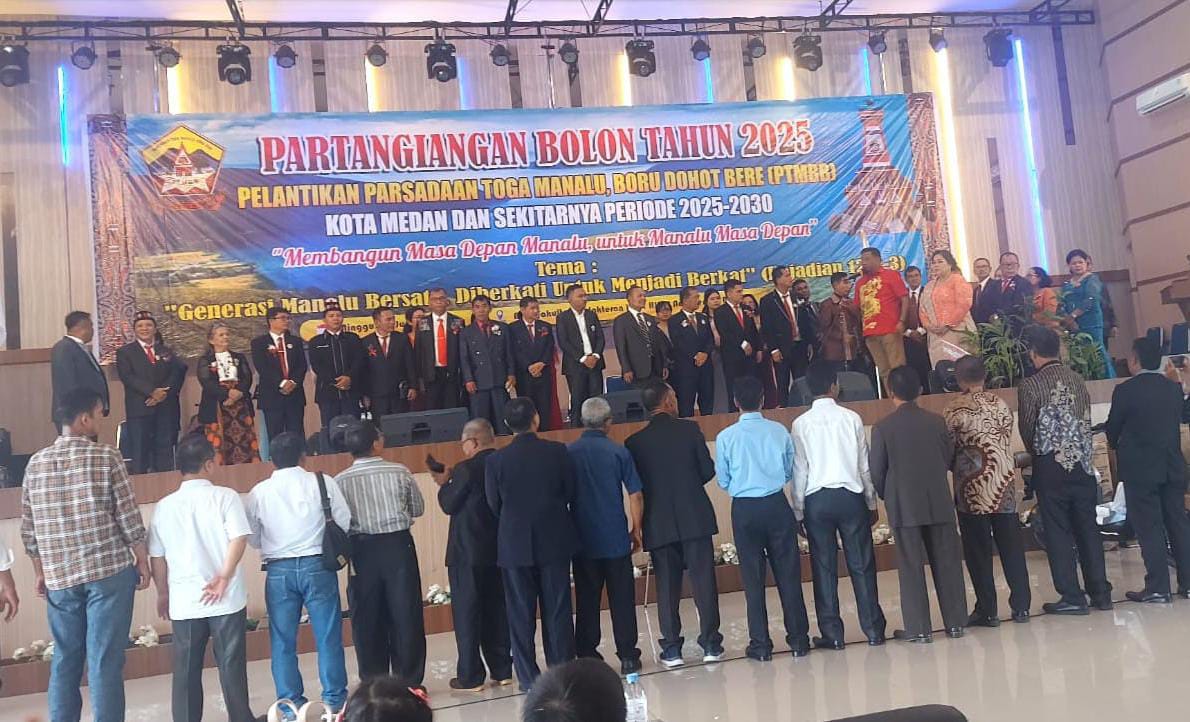 Medan, LIVESUMUT.com – Parsadaan Toga Manalu Boru Bere (PTMBB) Kota Medan periode 2025–2030 resmi dilantik dalam suasana penuh kekeluargaan dan semangat kebersamaan melalui kegiatan Partangiangan Bolon yang digelar di aula Fakultas Kedokteran Universitas HKBP Nomensen, Medan pada Minggu (1/6/2025).