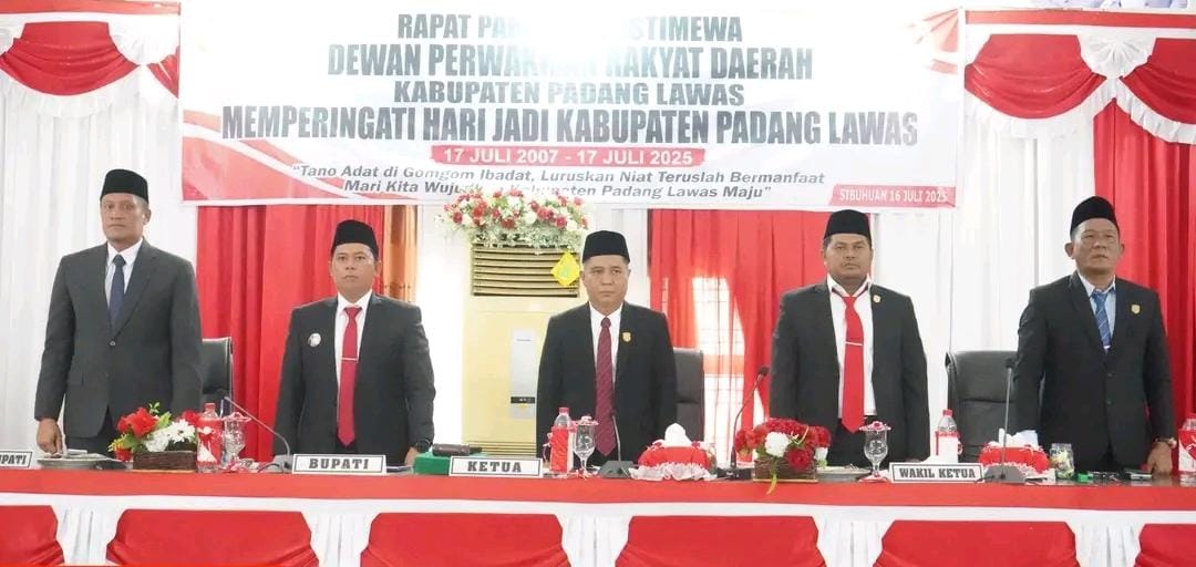 Padang Lawas, LIVESUMUT.com | Pemerintah Kabupaten Padang Lawas (Palas) menggelar Rapat Paripurna Istimewa DPRD dalam rangka memperingati Hari Jadi ke-18 Kabupaten Padang Lawas, pada Rabu (16/7/2025) di Ruang Sidang Paripurna DPRD, Jalan Karya Pembangunan No. 20, Sibuhuan.