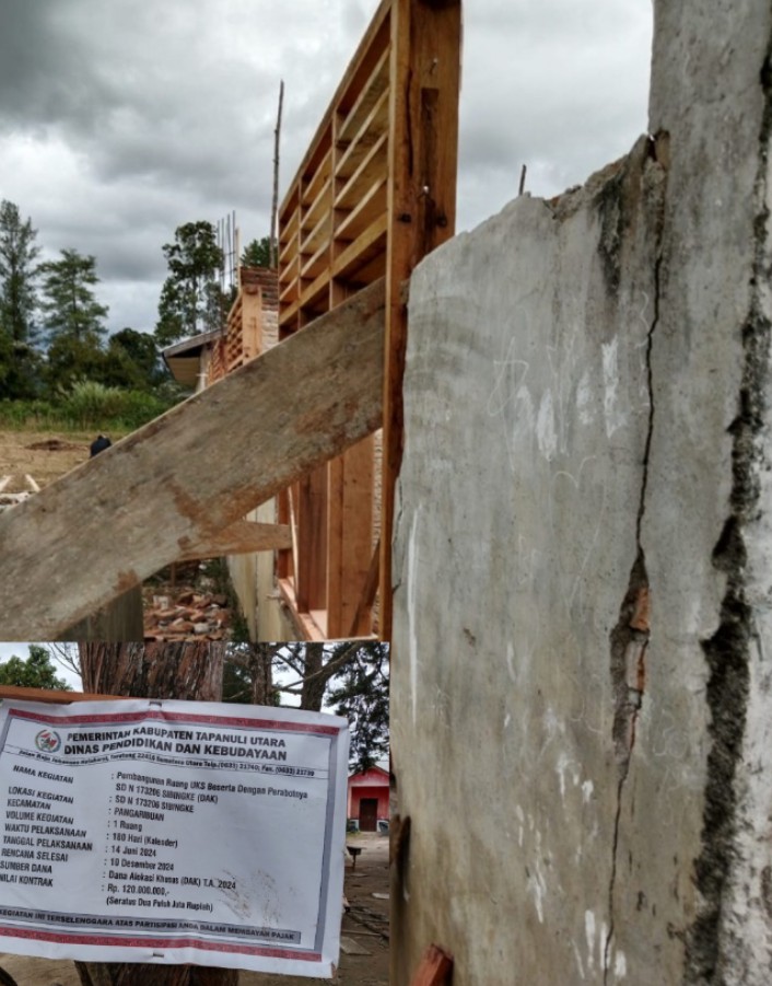 Tapanuli Utara, LIVESUMUT.com | Pembangunan gedung Usaha Kesehatan Sekolah (UKS) dengan Perabotnya di SDN 173206 Sibingke, Kecamatan Pangaribuan, Kabupaten Tapanuli Utara, yang dibiayai melalui Dana Alokasi Khusus (DAK) Tahun Anggaran 2024 senilai Rp120 juta, kini menjadi sorotan publik.