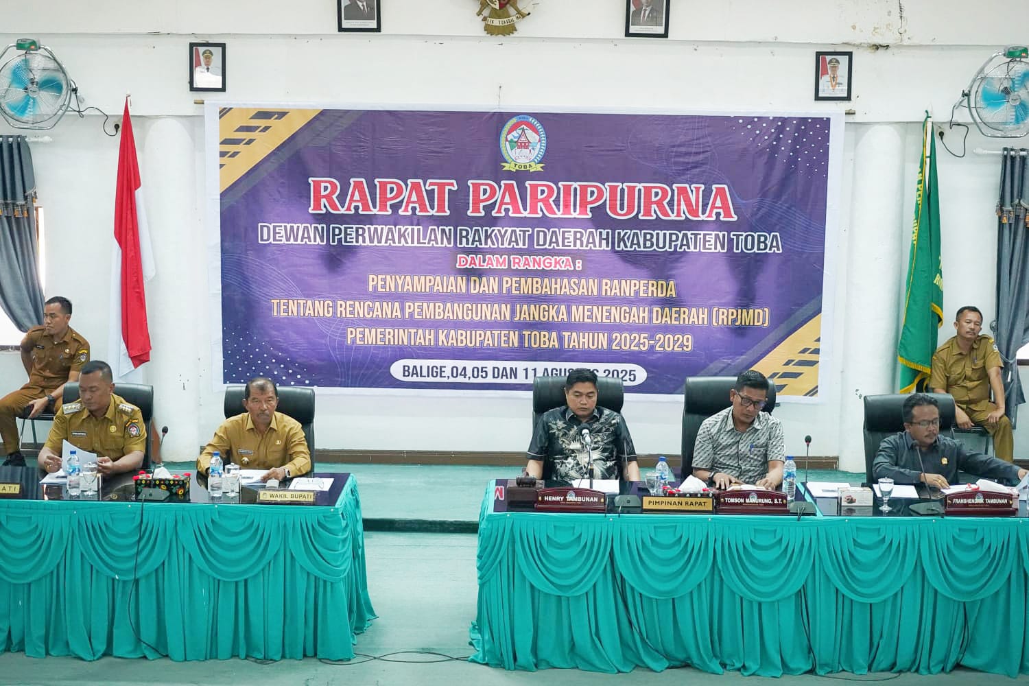 Dalam rapat yang dipimpin Wakil Ketua DPRD Toba, Henry Tambunan, didampingi Ketua Franshendrik Tambunan dan Wakil Ketua Tomson Manurung, seluruh fraksi menyampaikan pandangan kritis, masukan, saran, dan komitmen terhadap arah pembangunan Toba lima tahun ke depan.