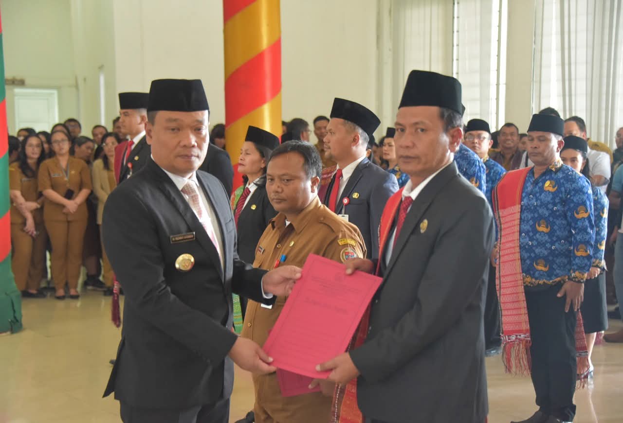 Acara tersebut dihadiri Sekda Chiristison Rudianto Marbun, para asisten, pimpinan OPD, ASN, serta keluarga pejabat yang dilantik.