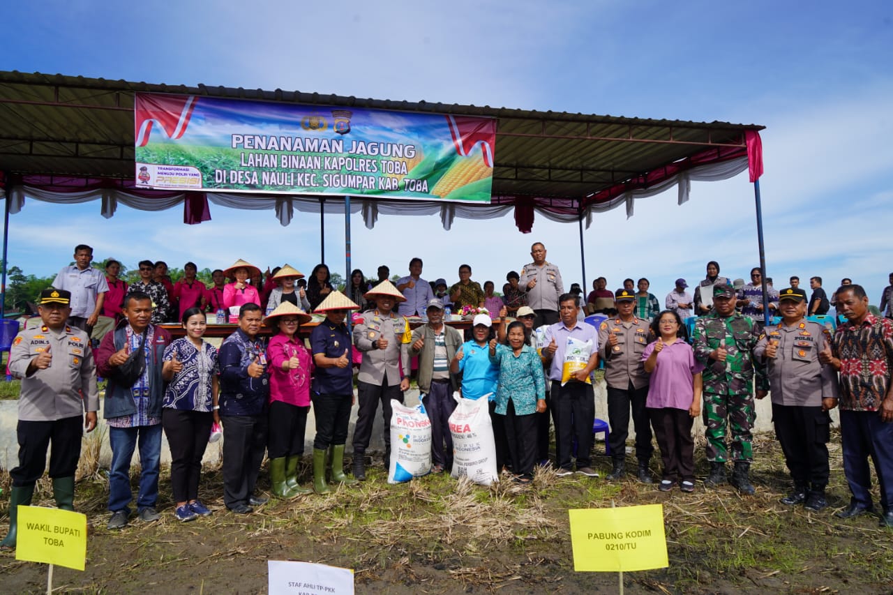 “Kegiatan ini merupakan komitmen bersama mendukung ketahanan pangan, dan meningkatkan produksi petani,” kata Kapolres Toba.