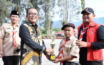 Barisan peserta terdiri dari OPD, perwira dan anggota Polres Samosir, personel TNI, hingga Pramuka.