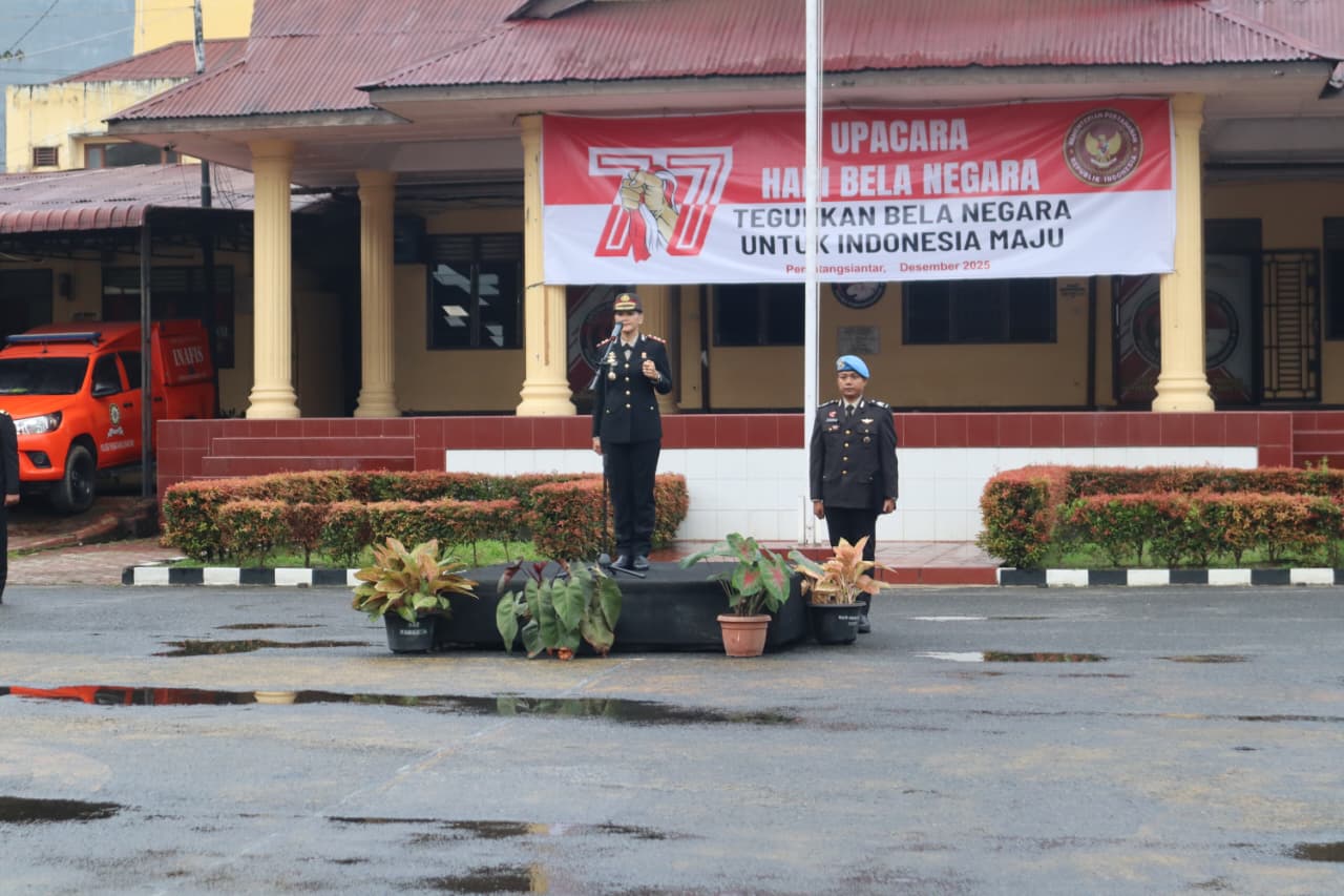 Kapolres Pematangsiantar membacakan amanat Presiden Republik Indonesia (RI) yang menyampaikan peringatan hari Bela Negara yang kita laksanakan hari ini adalah untuk mengenang perjuangan yang telah dilakukan oleh para pahlawan dalam mempertahankan kedaulatan negara.