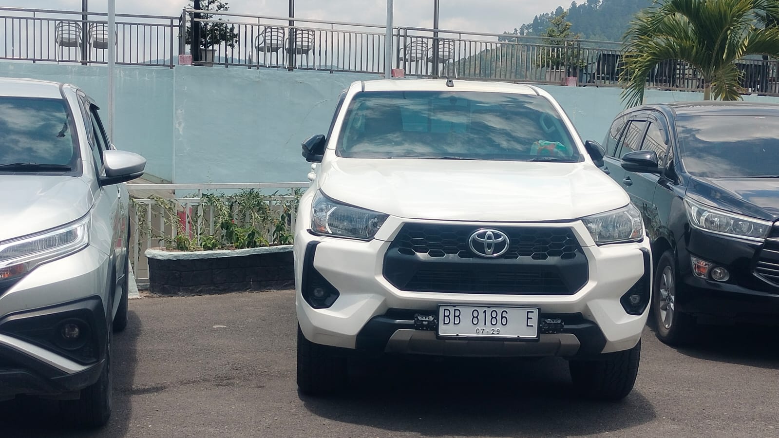 Mobil jenis Toyota Hilux dengan nomor polisi BB 8186 E yang diketahui merupakan kendaraan operasional Kepala KSOPP Danau Toba dan tercatat sebagai kendaraan dinas dari Kabupaten Toba tampak menggunakan Tanda Nomor Kendaraan Bermotor (TNKB) berwarna putih yang umumnya digunakan kendaraan pribadi.