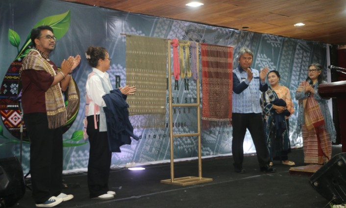 Acara tersebut turut dihadiri oleh jajaran perangkat daerah, tokoh masyarakat, pegiat budaya, serta ratusan perajin tenun dari berbagai desa di kawasan Danau Toba.